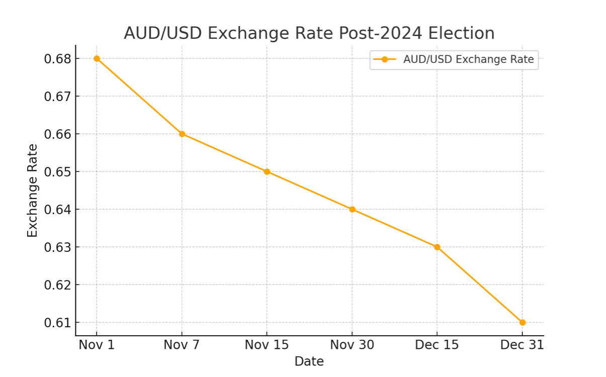 The following graph shows AUD/USD exchange rate movements following the 2024 US election: